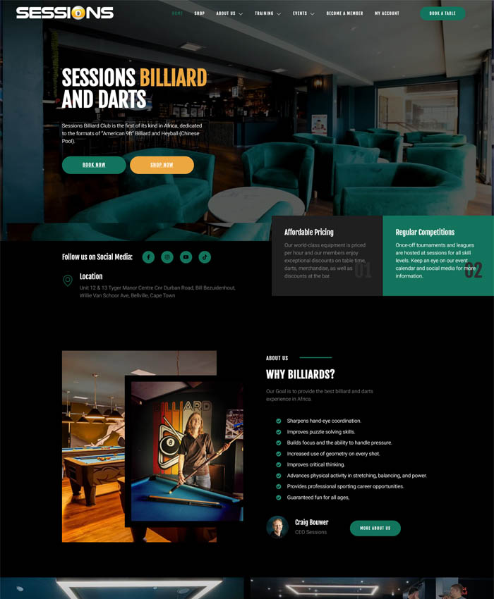 Sessions Billiard Club, a first-of-its-kind venue in Africa, needed a digital platform that matched the unique experience they offer. We were tasked with creating a comprehensive online presence that would not only attract new customers but also streamline their operations.